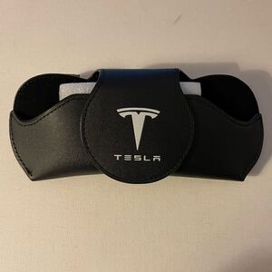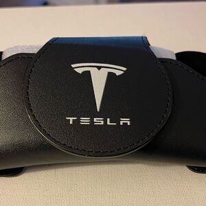 Tesla Logo Sunglass Holder for Car in Black Leather NWT