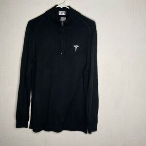 This Tesla Motor Co. Black LG Sweater Embroidered Logo Pullover Zip Neck size Medium