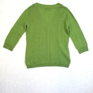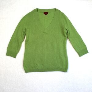 Tesori 100% Cashmere Sweater Womens Medium Green V Neck Soft Classic Knit