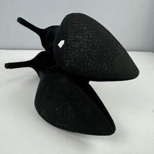 Elevate your evening wear with these Tesori black suede heels, size 6.5M. Featuring elegant cross straps and a sharp, pointed toe design, these heels offer a sophisticated silhouette that complements any formal outfit.