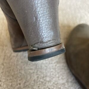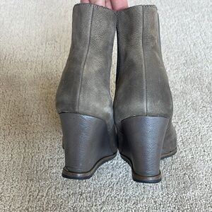 Stylish grayish taupe leather ankle boots. Perfect for any occasion.