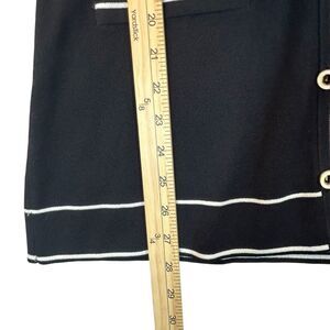 Tesori Sweater Jacket Blazer Cardigan Womens Sz L Black White Trim Button Up NOS. Top button hole has a little stretch. Measurements in photos and are approximate.