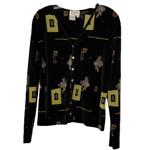 Tess Black Patterned Cardigan Size Large
