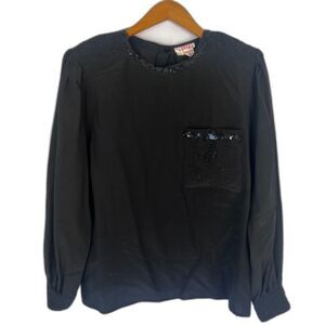 Tess Paris Milano Black Sequin Trim 100% Silk Vintage Blouse Size 14/LG