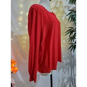Tess Vintage 100% Silk Red Keyhole Blouse Womens Size 10 Top Holiday Event