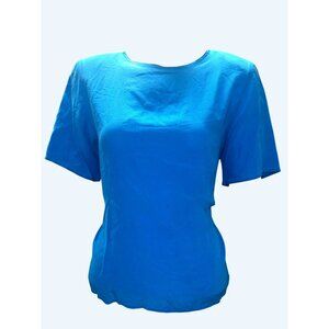 Tess Vintage M Cobalt Blue Silk Short Sleeve Blouse Minimalist Office Summer Top