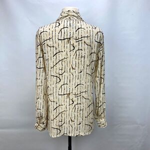 Tess Womans Silk Blouse Medium Button Front Long Sleeves Soft Art Print Career