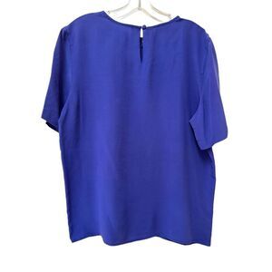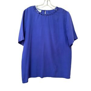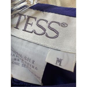 Tess women’s M vintage 90s button up blouse 100% silk blue lattice collar short
