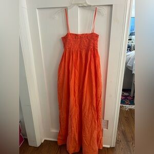 .Tessa Coral orange smocked spaghetti strap maxi dress