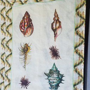 Towel features different seashells & sea life.