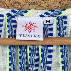 Tessora Blue Luisa Embroidered Stripe Neon Pom Pom. Dress medium