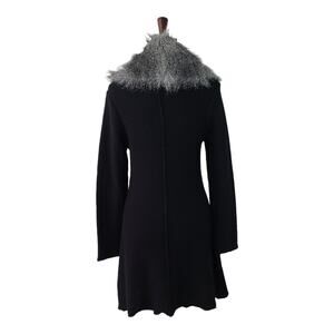 Tessori Black Embellished Cardigan Wool Blend Sweater Removeable Faux Fur Collar