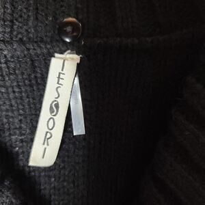 Tessori Black Embellished Cardigan Wool Blend Sweater Removeable Collar Italy S