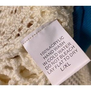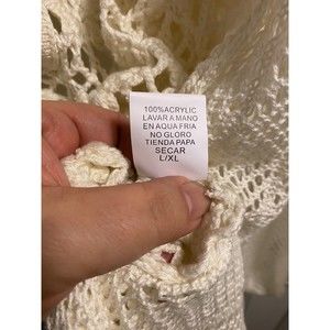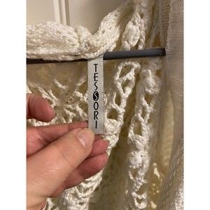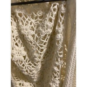 Tessori L XL Hooded Vest Cream Crochet Open Front Sweater Vest