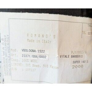 Crafted by the renowned Vitale Barberis Canonico, this blazer is a versatile addition to any wardrobe. The charcoal Romano's De Collezni blazer is tailored in a regular size 42R, designed to fit with a comfortable and classic silhouette. The single-breasted, three-button front paired with a notch lapel and four-button sleeve styling offers a refined aesthetic suitable for various occasions, from business meetings to weddings.