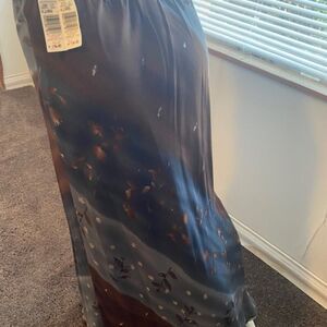 Tessuto Vintage Deadstock Gray/Brown Floral maxi skirt, size XL (100% Rayon)