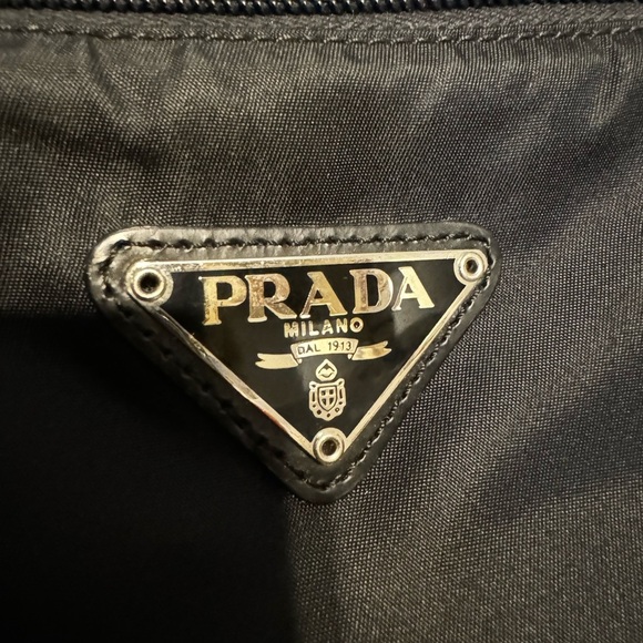 Black nylon tote bag, with a slight sheen to the fabric. Shows no sign of wear which tells me this bag was purchased for a collection, not for use. The photos show both outside and inside of the bag.