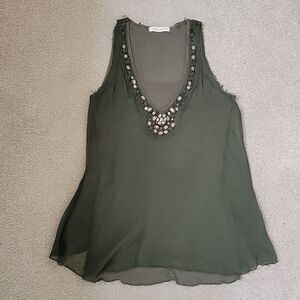 Testament olive green embellished tank
