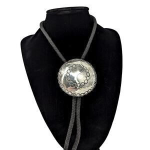 Tested Silver Bolo Tie Round Tooled Medallion Hand Etched