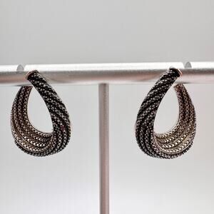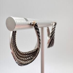 Tested Silver Twisted Hoop Earrings Faux Marcasite Milgrain Cobbled 9.23 Grams