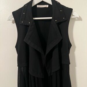 Testimony Los Angeles Sleeveless Long Duster in Black With Studded Collar Size Small.