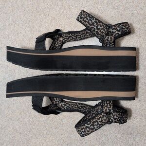 Teva Black Leopard Print Flatform Universal Sandals Size 8