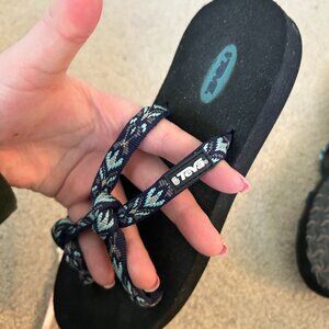 Experience ultimate comfort and style with Teva's black sandals, featuring a unique criss-cross strap design. These casual summer sandals boast a flat sole and a simple yet chic look, perfect for everyday wear.