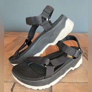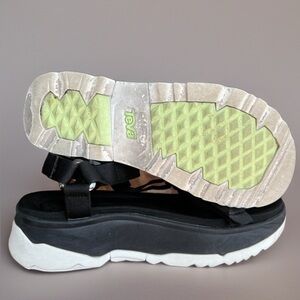 Comfortable Teva sandals featuring black straps and cream soles. Ideal for everyday adventures.