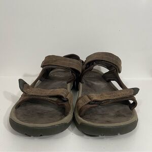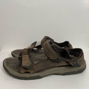 Gently worn men's size 13 Teva Brown Leather Velcro Strap Outdoor Athletic Sandals. Please review all photos for any signs of wear-pictured as is. Disclaimer: Any items with any wear/staining has not been treated, and unsure of ability to remove/treat condition. Comes from a smoke free home, bundle with other items to save & minimize shipping cost.