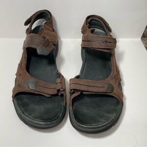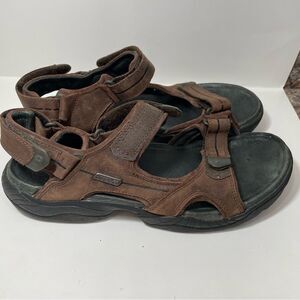 Gently worn men’s size 13 teva brown Velcro athletic outdoor sandals. Please review all photos for any signs of wear-pictured as is. Disclaimer: Any items with any wear/staining has not been treated, and unsure of ability to remove/treat condition. Comes from a smoke free home, bundle with other items to save & minimize shipping cost.