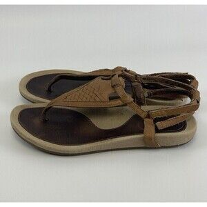 Teva Capri Brown Leather Woven T-Strap Sandals Flat Slingback 1003970 Womens 8.