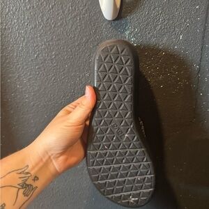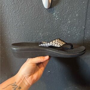 Elevate your look with these elegant black and silver sandals. Designed for comfort and style, they are perfect for any occasion. They are in great condition