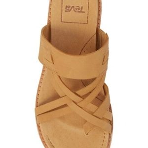 Teva Encanta Like New Tan Leather Strappy Thong Slide Sandals Sz 10
