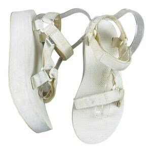 Teva F16019L Womens Flatform Universal Platform Open Toe White Sandals 9