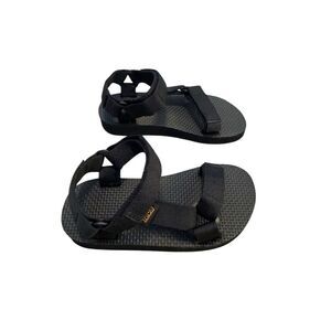 Keywords: Teva sandals, black sandals, casual footwear, adjustable straps, comfortable footbed, durable sandals, kids sandals, open toe, rubber outsole, unisex kids, size 11, buckle closure, excellent traction.