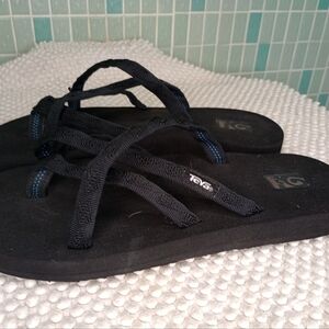 Teva Multi Strap Padded Sole Slip on Sandals Black. Size 8. Previously worn condition.