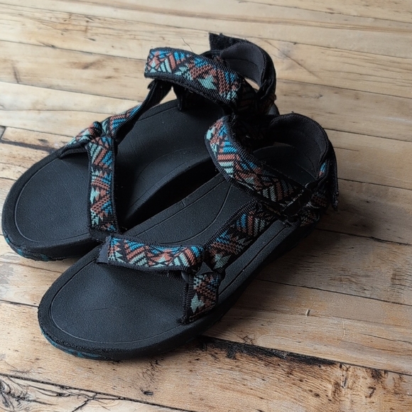 These are our very favorite style of summer athletic sandals/water shoes. Vibrant sandals with multicolor straps. excellent condition. youth size 4 unisex