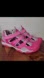 Hot Pink leather sandals. Closed toe. Rubber bottoms. Hook and loop closures on in straps provides a secure fit for active wear.