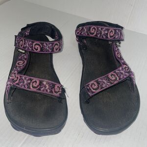 Teva Sandals Womens Size 6 Black Purple Strappy Walking Hook Loop Hiking Casual