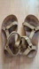 Comfortable tan strappy sandals with adjustable straps. Worn but still in great shape.