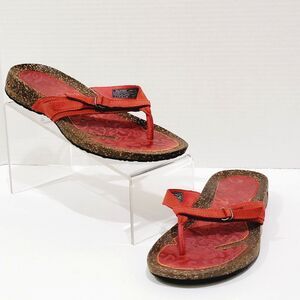 Teva Ventura Womens Flip Flops Size 9 Red Leather Cork Thong Toe Post Sandals