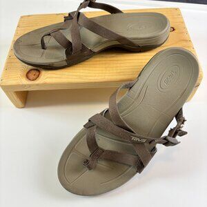 Teva Voya Infinity Mush Brown Sandals Women’s 8 Adjustable Strappy Slides READ
