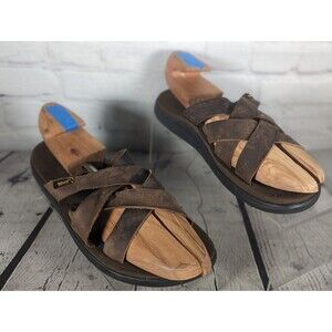 Teva Voya Slide Men's Size 12 Shoes Carafe Brown Leather Casual Slip On Sandals
