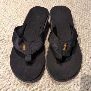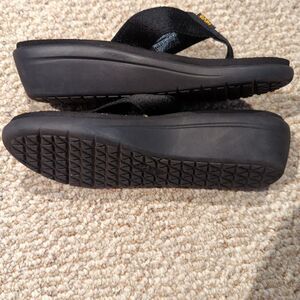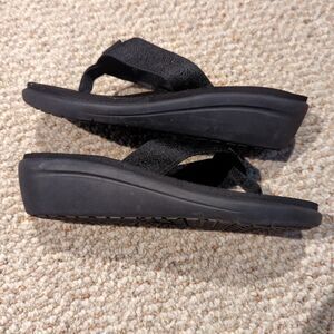 Teva Voya Slip On Wedge Thong Flip Flops Sandals Womens 7 Black Summer Beach