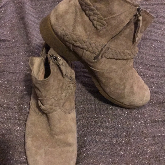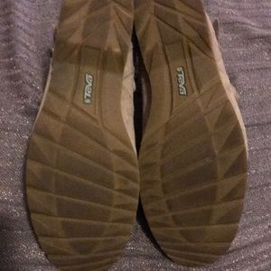 Teva weatherproof booties with zipper side and braided stap. Suede material is water repellant. Very comfortable and lightly used.