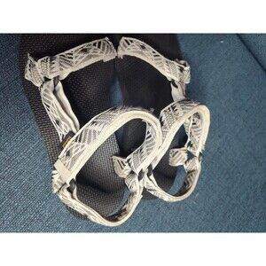 The Teva Women Size 8 Original Universal Sandals in Boomerang White Grey are a stylish and versatile choice for various occasions. With a flat heel and adjustable straps, these sandals offer comfort and practicality. The geometric pattern and strappy design add a touch of elegance, making them suitable for formal events or outdoor activities. The limited edition design and cushioned insole provide added convenience and luxury, while the rubber outsole ensures durability. Perfect for travel, activewear, or casual outings, these Teva sandals are a must-have for any wardrobe.