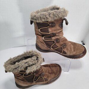 Teva's winter boots offer exceptional warmth and durability for cold weather conditions. The stylish faux fur lining adds sophistication, while the suede exterior ensures a rugged yet chic look. A reliable choice for comfort and style during the colder months.