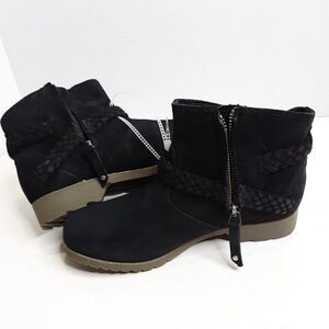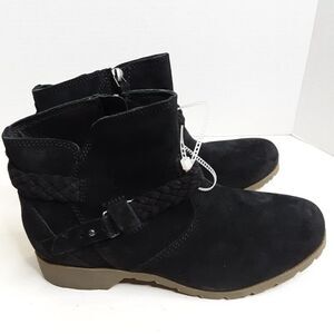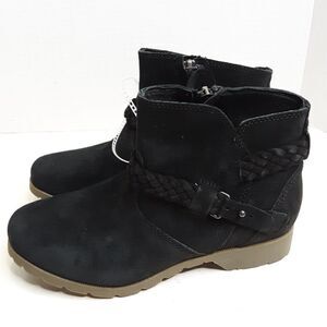 brand new store display shoes, no box. light wear in the leather from people try it on at the store. teva brand women's ankle leather boots size 6M black color. pet and smoke free home.