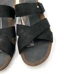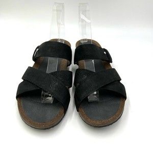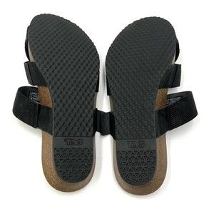 Teva Women's Mahonia Black Leather Slip On Slides Sandals Shoes Size 10.5