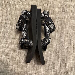 Stylish and comfortable sandals with a unique monochrome design. Ideal for casual, travel, or walking the dog wear. Sandals are in excellent condition, unfortunately they did not fit me bc I’m a 6.5.